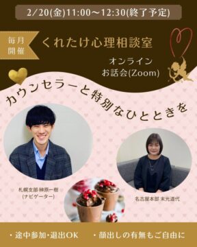 ご興味のある方は、以下のイベントフォームよりエントリーいただくか、くれたけカウンセラーにお申し付けくださいませ。